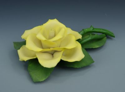D-024 CAPODIMONTE YELLOW ROSE / flower center piece ITALIAN porcelain MIB