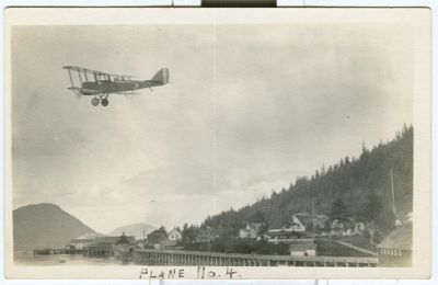 Town in Alaska, Plane #4 Taking Off, Single Engine Bi-plane, RPPC