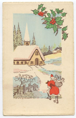 Santa Claus with Teddy Beay Christmas original old 1940s postcard