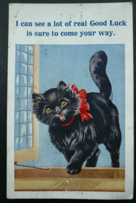 Title (ebay affiliate link): POSTCARD LUCKY BLACK CAT posted to LANGHAM OAKHAM RUTLAND circa 1940s period