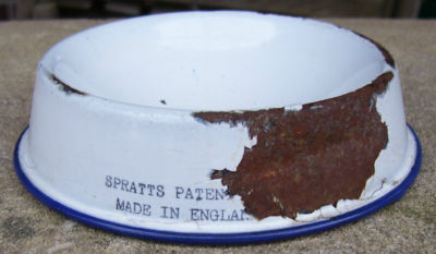 Title (ebay affiliate link): Vintage Antique Spratts Patent Enamelware Dog Food Advertising Dish Bowl