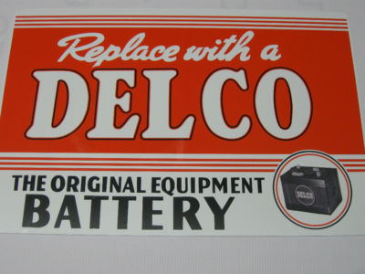 Vintage,Delco Battery,GM,Muncie Indiana, 12x18 Alum. Sign