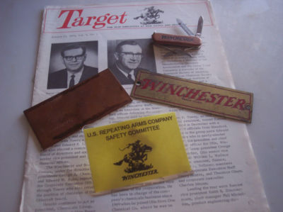 WINCHESTER - lot of 6 collectibles unique item ( 1974 news letter,knife,plates)