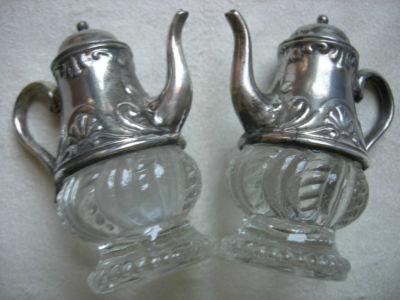 Title (ebay affiliate link): antique salt/pepper shaker set-clear swirled glass/silver plated tops w/spouts!!