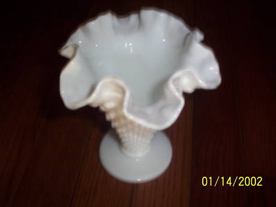 Vintage Fenton Hobnail Milk Glass Double Fluted Vase