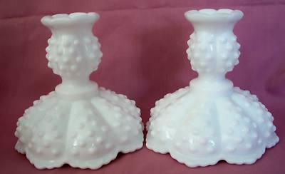 VINTAGE FENTON MILK GLASS HOBNAIL CANDLE HOLDER PAIR