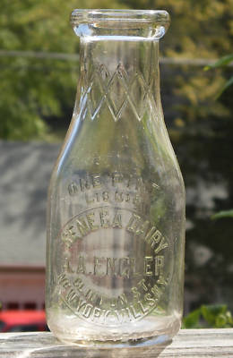 SENECA DAIRY New York Mills embossed pint milk bottle