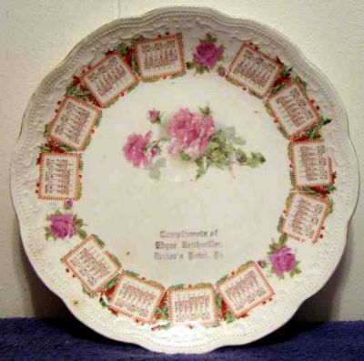 1909 CHINA CALENDAR PLATE - COMPLIMENTS OF EDGAR KEITHMILLER DECKERS POINT. PA.