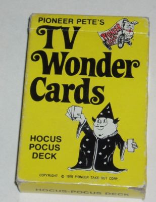 Title (ebay affiliate link): 1976 Pioneer Chicken TV Wonder Cards Magic Trick Deck premium Pioneer Pete