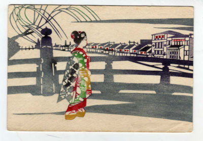 VINTAGE POSTCARD FROM JAPAN BY MIKUMO WOOD BLOCK PRINT CO JAPAN
