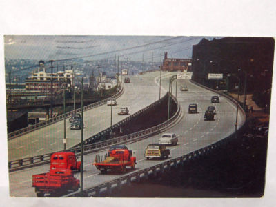 1950s POSTCARD TRUCKS,ALASKA WAY VIADUCT ALONG THE SEATTLE WATERFRONT, WA