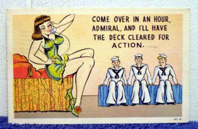 Title (ebay affiliate link): 1940's WW II ERA COMIC POSTCARD - "COME OVER IN AN HOUR, ADMIRAL... "