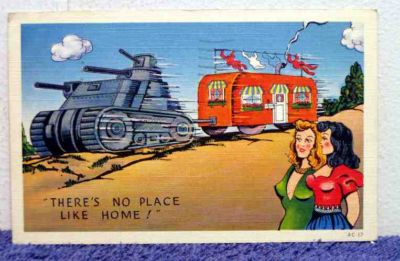 Title (ebay affiliate link): 1940's WW II ERA COMIC POSTCARD - "THERE'S NO PLACE LIKE HOME!"
