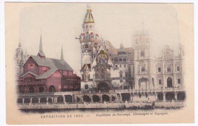 Title (ebay affiliate link): France Paris Exposition 1900 Postcard Pavillons de Norwege Allemagne et Espagne