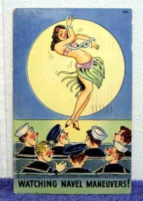 Title (ebay affiliate link): 1940's WW II ERA COMIC POSTCARD - "WATCHING NAVEL MANEUVERS!"