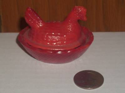Rare Red Milk Glass "HEN In NEST" Small (3") Nesting