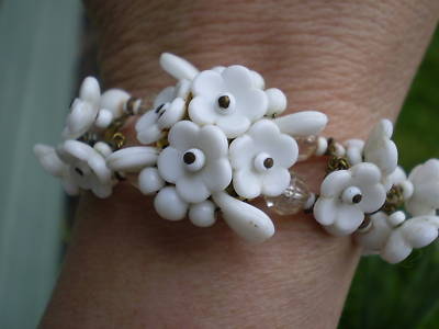 Vintage Milk Glass Flower Shaped Beads Coil Bracelet