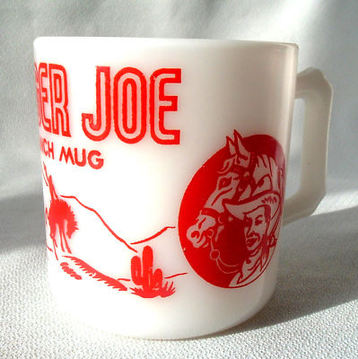 298) Hazel Atlas white Milk Glass RANGER JOE RANCH MUG