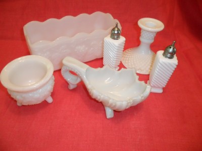 Vintage Milk Glass 6 Assorted Pieces Salt Pepper & More