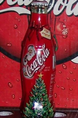 Title (ebay affiliate link): 02 HOLIDAY SANTA WRAPPED 8 OZ COCA COLA BOTTLE FULL