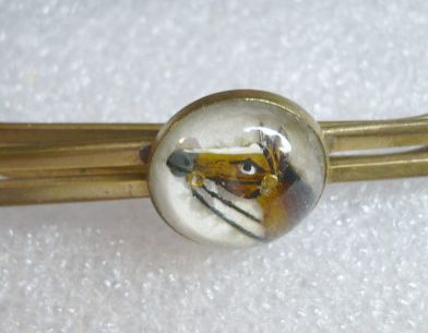 ANTIQUE 'WOOLNO' GP TIE CLIP HORSE BUTTON CABACHON