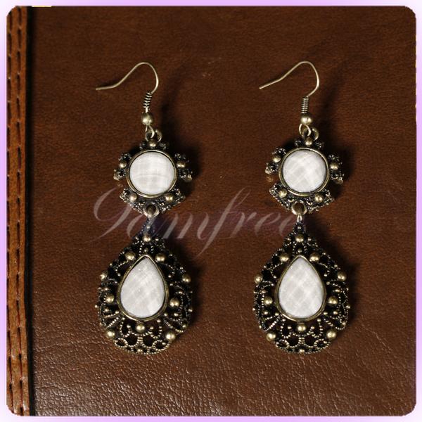 Title (ebay affiliate link): Antique bronze Tear drop Gemstone floral Dangle hook Earrings Vintage Retro