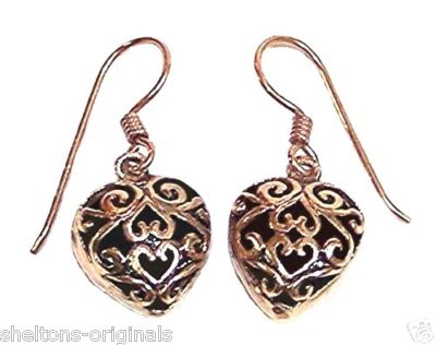 STUNNING * Filigree Heart EARRINGS ANTIQUE ROSE GOLD VINTAGE