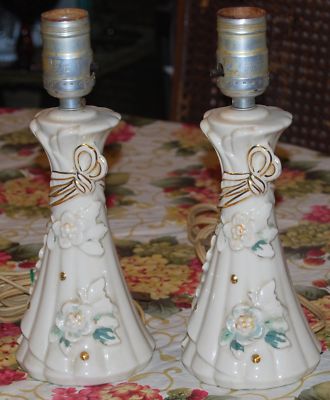 Title (ebay affiliate link): OLD FLORAL Embellished Vintage PAIR of Table or Vanity Lamps...NICE..
