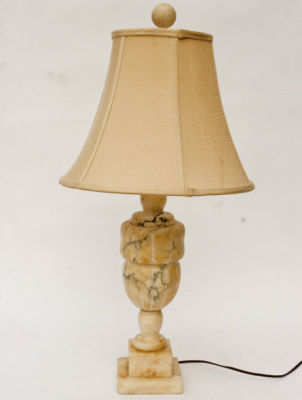 Mid Century Carved Marble Classical Revival Lamp and Silk Shade