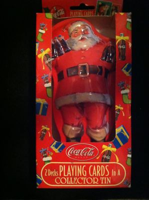 Title (ebay affiliate link): Coca Cola Collector Tin and Playing Cards Christmas edition santa Claus Bicycle