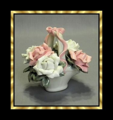 Title (ebay affiliate link): VTG PORCELAIN PINK WHITE ROSE FLOWER BASKET UNKNOWN CAPODIMONTE
