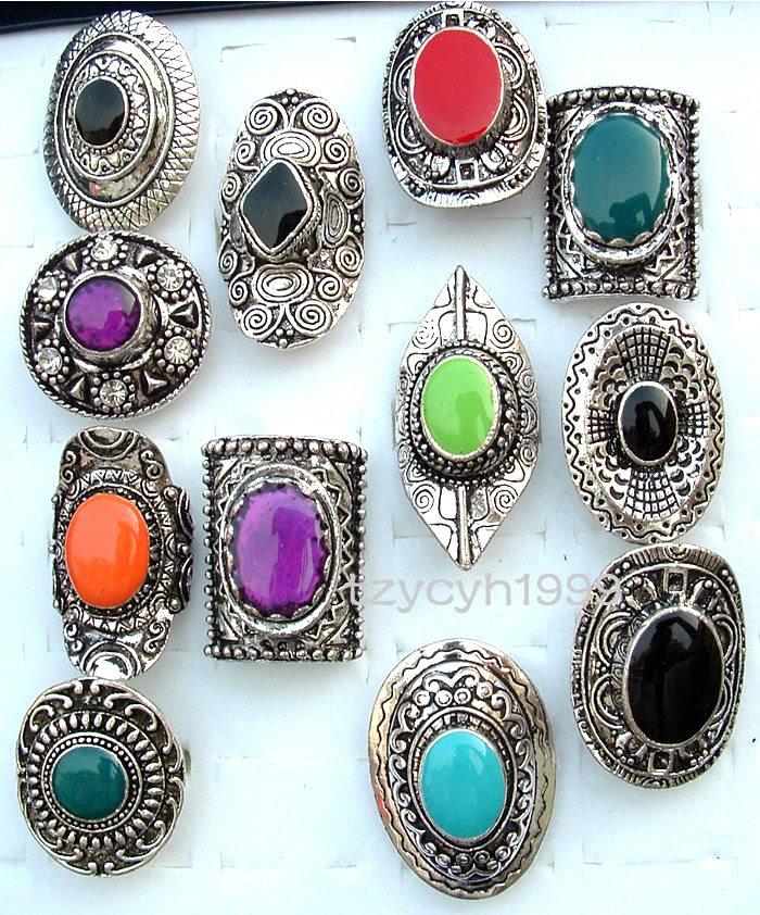 12 enamel imitation antique silver rings