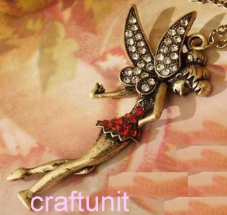 Title (ebay affiliate link): Antique Bronze Chain Necklace Rhinestones Angel Pendant N314