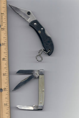 Title (ebay affiliate link): Antique Sabre Pearl handle 3 blade pocket knife & a keychain lockblade knife
