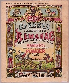 Title (ebay affiliate link): 1908 Barker's Medicine Almanac-Recipes-Advice-ads-cartoon pages