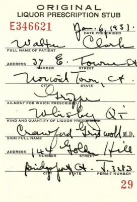 Title (ebay affiliate link): Antique Norwich CT PROHIBITION WHISKEY Flu PRESCRIPTION Doctor Stub Pharmacy Bar