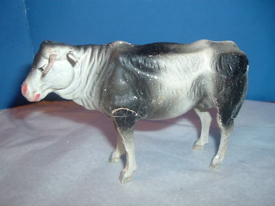 ANTIQUE GERMAN PUTZ LEG, PAPER MACHE, WOOD BULL CHRISTMAS NATIVITY PRE 1946