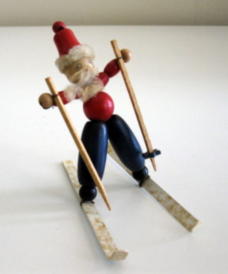 VINTAGE GERMAN WOOD SANTA ON SKIS