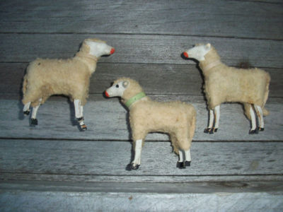 3 Putz Sheep - Wooden Legs - Christmas - Vintage