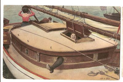 Title (ebay affiliate link): 1900's VINTAGE POSTCARD WOODEN SPEED SAIL BOAT SAILING MAST VICTORIAN ERA FLAG