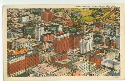vintage Des Moines Iowa postcard,Downtown,Register tribune,Iowa postcard,vintage