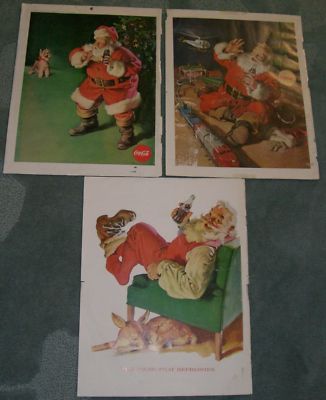 Title (ebay affiliate link): 3 Vintage 60's Coke Coca Cola Christmas Santa Ads Santa w/ Train, Fawn and Puppy