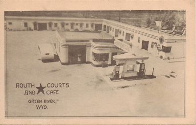 Title (ebay affiliate link): 2 Vintage Postcards Routh Courts and Cafe Green River Wyoming