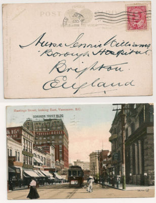 Title (ebay affiliate link): VANCOUVER, BC DOMINION TRUST BUILDING, HASTINGS STREET, LOOKING EAST