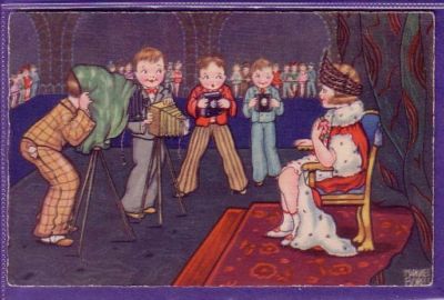 OLD ILLUSTRATED POSTCARD BORISS CHILDREN PHOTO CAMERA