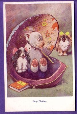 OLD ILLUSTRATED POSTCARD BONZO STUDDY STOP FLIRTING