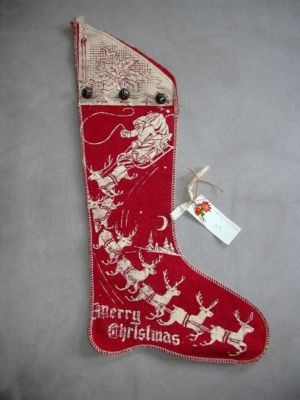 Vintage Christmas Stocking w/ bells