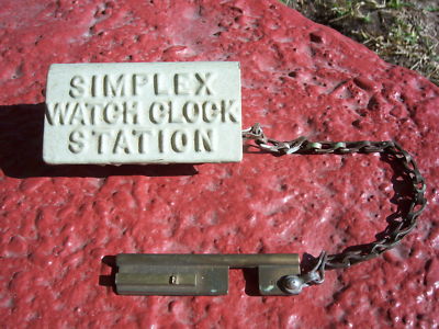 Title (ebay affiliate link): ANTIQUE SIMPLEX WATCH CLOCK STATION # 5 BRASS KEY 12" CHAIN CAST IRON METAL BOX