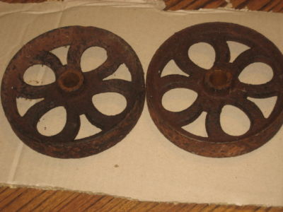 Title (ebay affiliate link): Lot of 2 RARE Antique Cast Iron Wheels-Decorative -Hard To Find-GOOD CONDITION