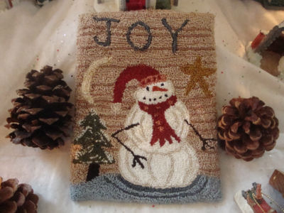 Primitive Punch Needle Mat~ Snowman/ Joy~